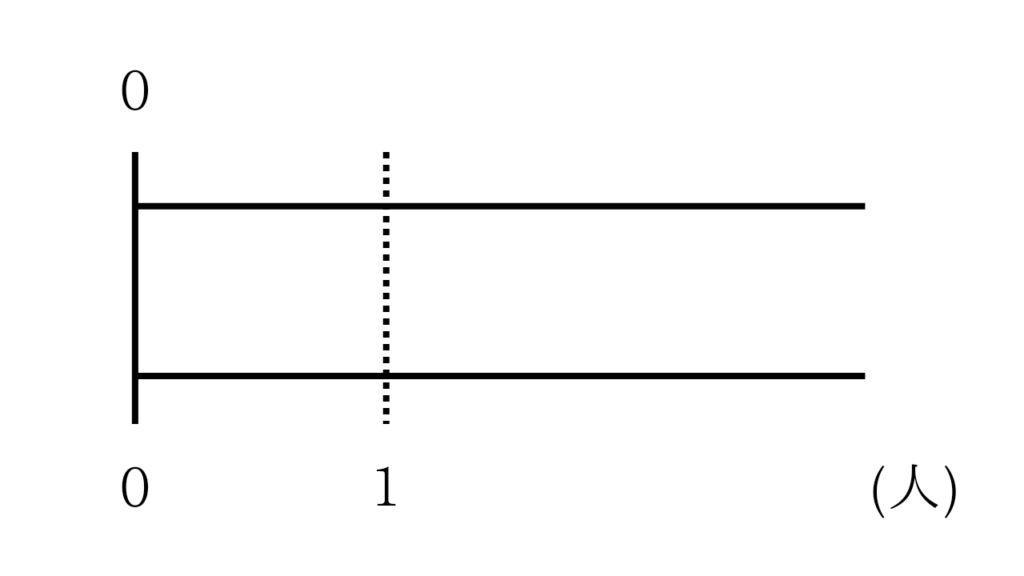 今回の問題には1人分と書いてあるので、下の直線の右端に単位を(人)と書きます。