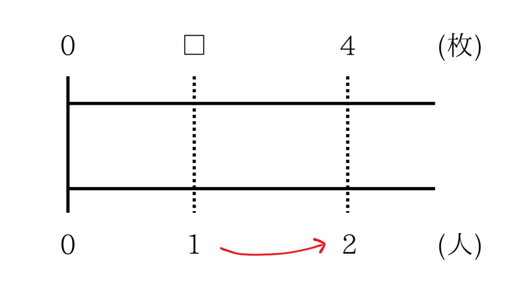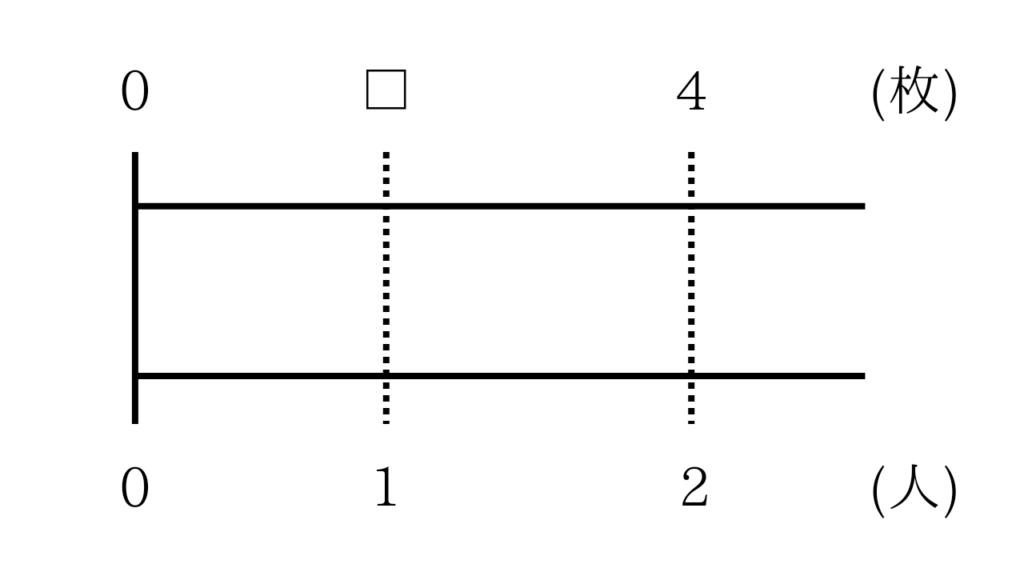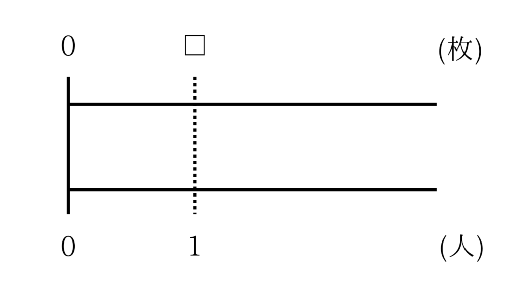 1人分の数は分からないので、上の直線に(1の上に)□とかきます。