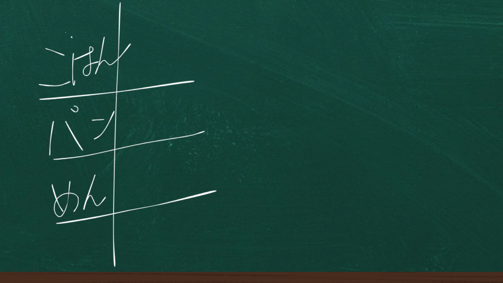 黒板に表をかいて(我ながら雑だねえ)