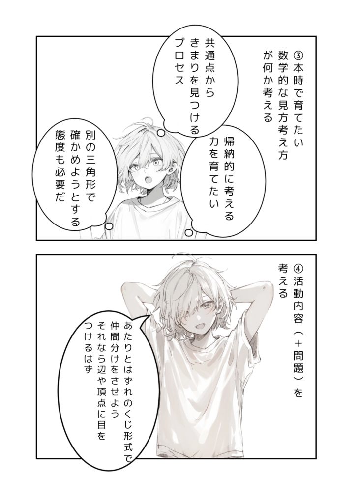 ただ問題の解き方が分かればいいんじゃなくて、別の問題でも数学的な見方考え方を働かせることができるようにならなきゃいけない。
