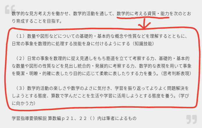 学習指導要領解説 算数編p21、22( )内は筆者によるもの