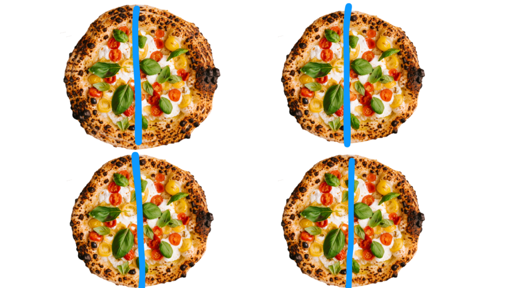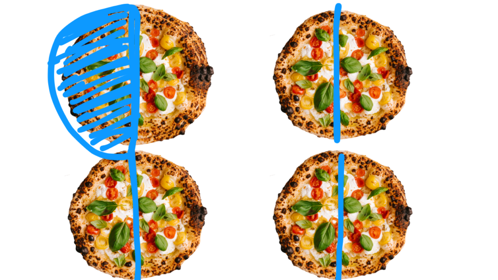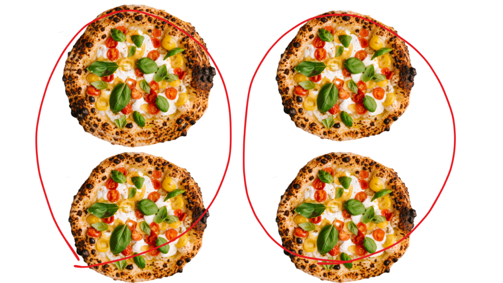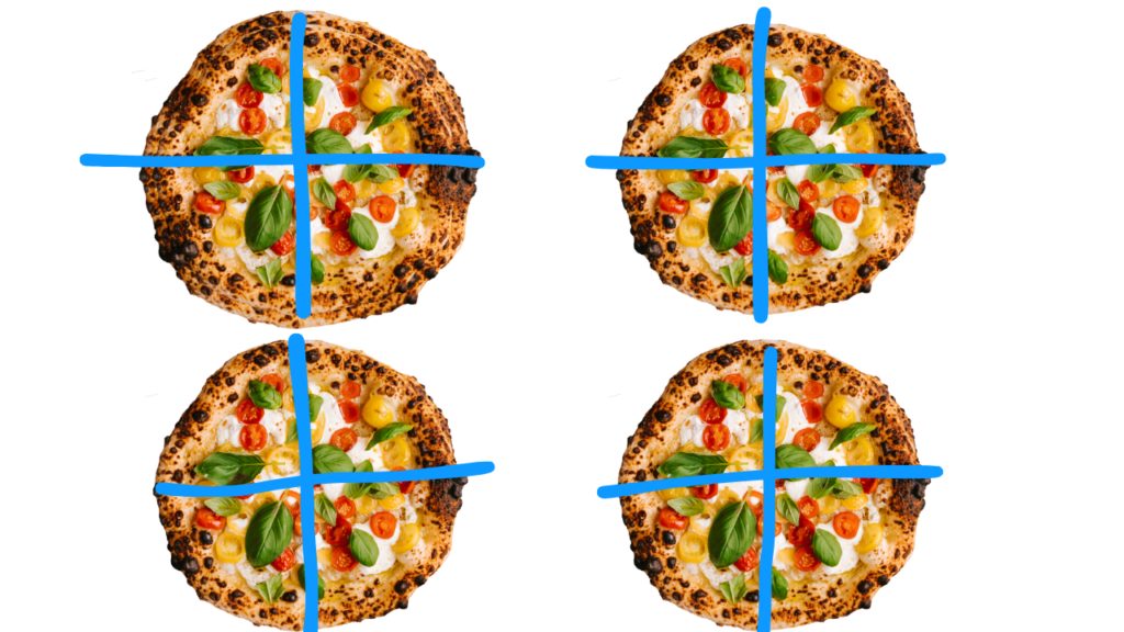 式だと抽象的で分かりにくいけど、ピザを使えばイメージしやすい。